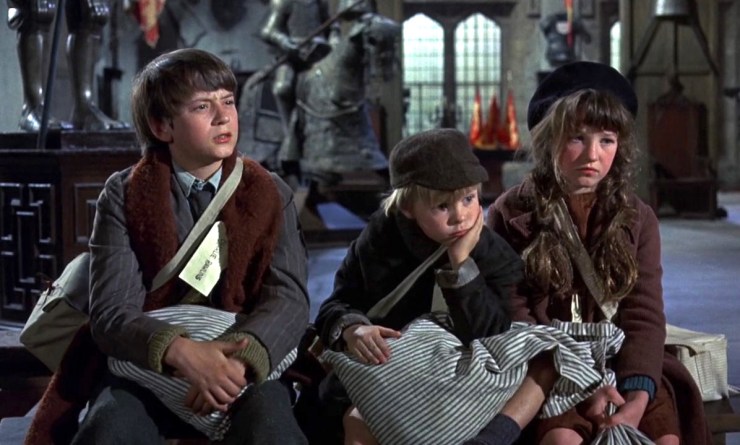 The film begins with three young children from London needing shelter and care from a small town in the countryside. They are orphans, which makes their plight all the more dire. The film implies that the London Bombing Raids are happening, and so the government is trying to get as many children out of the city as possible. These three children would really rather stay in the dangerous city that they know than the dreary countryside where they don’t know anyone. To make their new living arrangements all more unappealing, the woman who takes them in, Miss Price (Angela Lansbury), doesn’t really care for them and only reluctantly agrees to house them because she’s legally obligated to do so.